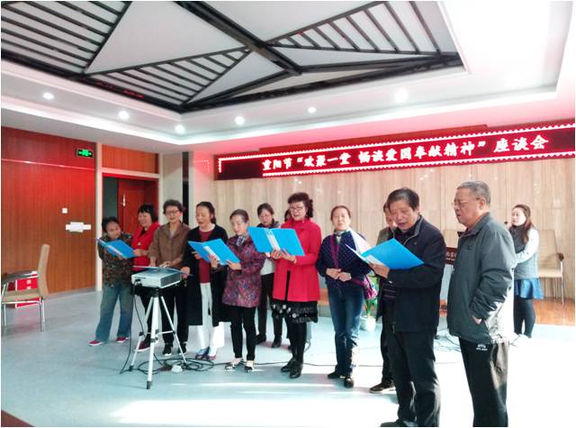 最后,離退休同志們興致勃勃地表演了9個(gè)節(jié)目,展示了老同志們愛國愛所奮斗不息的精神風(fēng)貌,一曲《團(tuán)結(jié)就是力量》把座談會(huì)氣氛推向高潮。