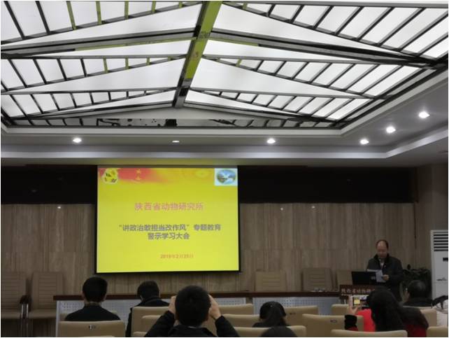 為深入學(xué)習(xí)貫徹習(xí)近平總書記關(guān)于秦嶺北麓西安境內(nèi)違建別墅問題的重要指示批示精神,貫徹省紀(jì)委和陜西省科學(xué)院黨組關(guān)于“講政治、敢擔(dān)當(dāng)、改作風(fēng)”專題教育活動的會議精神,落實對于違規(guī)收送禮金專項整治工作的系列文件精神,2月25日,我所在五樓會議室召開“講政治、敢擔(dān)當(dāng)、改作風(fēng)”專題教育警示學(xué)習(xí)大會。會議由黨委副書記、紀(jì)委書記、副所長王開鋒同志主持,所領(lǐng)導(dǎo)班子、各管理部門負(fù)責(zé)人、各研究中心主任以及全體在職黨員同志50余人參加了會議。