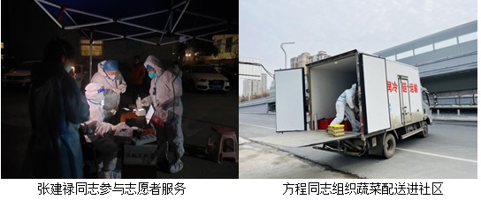 同時(shí),涌現(xiàn)出一批自愿下沉到一線、支持疫情防控工作的研究所職工。他們自覺自愿積極加入到社區(qū)防疫工作中,以深切的大局意識、政治意識、服務(wù)意識,服務(wù)社區(qū)居民。據(jù)不完全統(tǒng)計(jì),研究所先后有多名黨員同志主動(dòng)充當(dāng)志愿者,服務(wù)社區(qū)核酸檢測、服務(wù)居家隔離人員、組織物資運(yùn)輸及參與社區(qū)日常防疫工作。王靜同志,積極組織小區(qū)住戶為醫(yī)護(hù)人員捐贈物資,協(xié)助社區(qū)工作服務(wù)隔離人員、組建志愿者小隊(duì)維護(hù)核酸檢測及生活物資發(fā)放秩序。任永剛同志,張建祿同志,作為志愿者服從當(dāng)?shù)亟M織安排,為附近小區(qū)執(zhí)行核酸檢測采樣任務(wù)。方程同志,在小區(qū)封控狀態(tài)下,積極協(xié)調(diào)蔬菜配送,在緊張時(shí)期為小區(qū)居民爭取到整車生活物資,解決住戶生活所急。