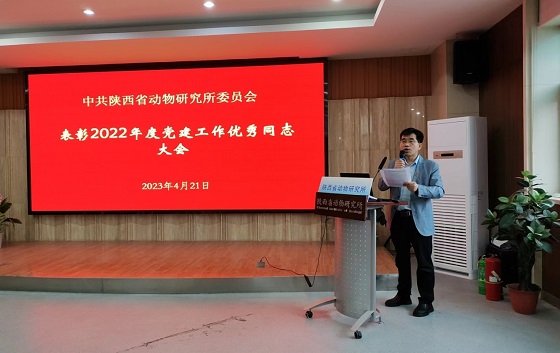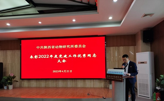 4月21日上午, 省動物所黨委舉行2022年度黨建工作優(yōu)秀同志表彰大會。黨政班子成員、在所黨員同志及非黨員代表近40人參加會議。黨委組織委員石勇強主持會議。
